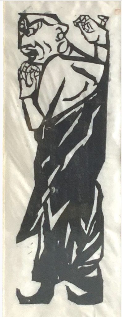 釈迦十大弟子の一人・富楼那(説法第一)を主題とした板画。